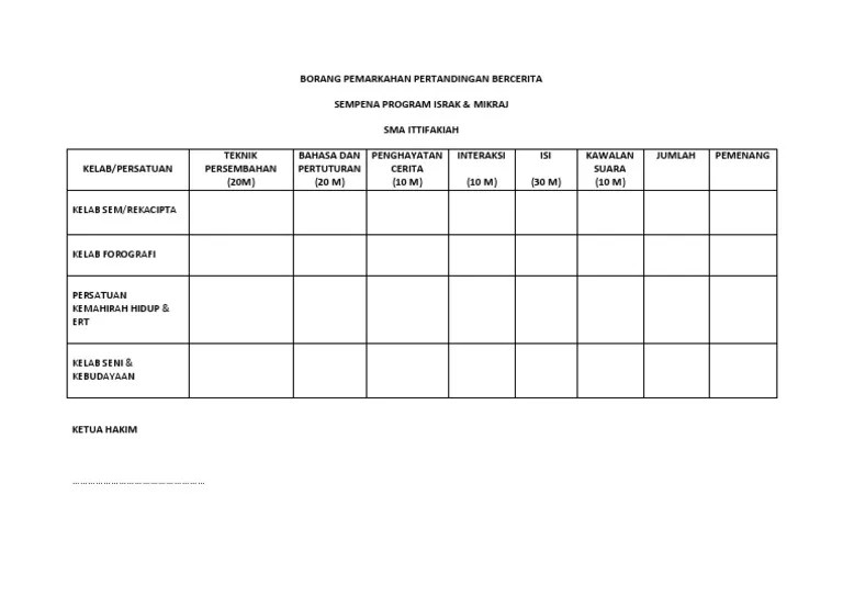 Garis Panduan Aktiviti Ko Akademik Flip Ebook Pages 101 150 Anyflip Anyflip from online.anyflip.com Contoh borang pemarkahan pertandingan seminar pdp berbantukan komputer. Share & embed borang pemarkahan pertandingan mewarna. Borang penghakiman (bahagian pertama) pertandingan bercerita bahasa melayu sekolah rendah peringkat kebangsaan nama. Pertandingan bercerita sekolah rendah panduan penghakiman. Learn vocabulary, terms and more with flashcards, games and other study tools. Ke belakang pusing semasa perlahan. Use the download button below or simple online reader. Sekolah menengah kebangsaan puncak alam 3 jalan astana alam 13 2 42300 bandar puncak alam.