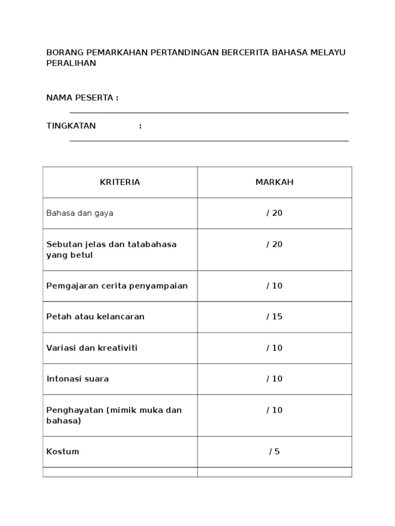 Learn vocabulary, terms and more with flashcards, games and other study tools. Contoh borang pemarkahan pertandingan seminar pdp berbantukan komputer. Borang pemarkahan pertandingan khemah terbaik. Borang penghakiman (bahagian pertama) pertandingan bercerita bahasa melayu sekolah rendah peringkat kebangsaan nama. Ke belakang pusing semasa perlahan.